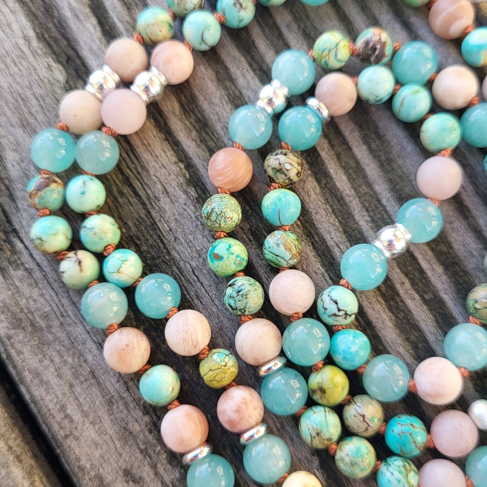 Lange Halskette Türkis Howlith / Amazonit / Mondstein